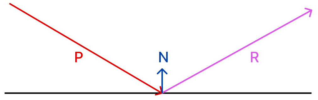 입사벡터 P와 법선벡터 n이 주어졌을 때, 반사벡터 R은 어떻게 구할 수 있을까?