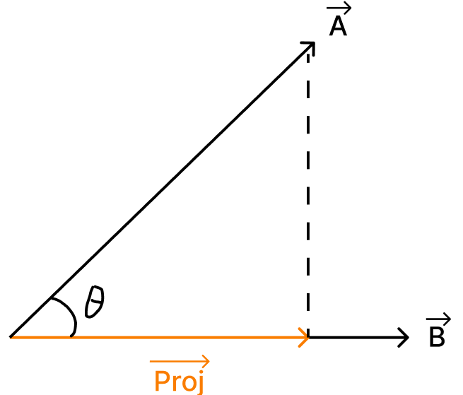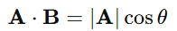 즉, A를 B의 위로 내렸을 때, 그 길이는 |A| cosθ 가 된다.
