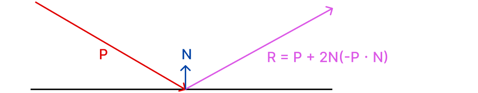 즉, 반사벡터 R = P + 2N(-PㆍN) 이다.