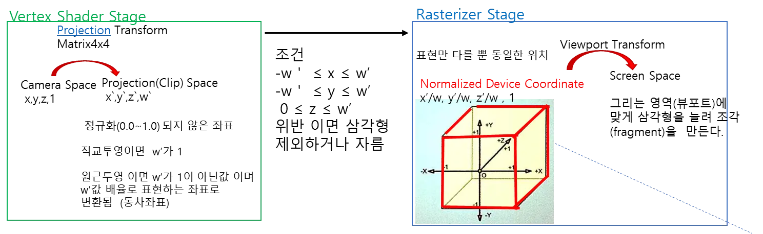 - 좌표계를 화면 좌표로 변환 Clip -> NDC -> Screen 변환하며