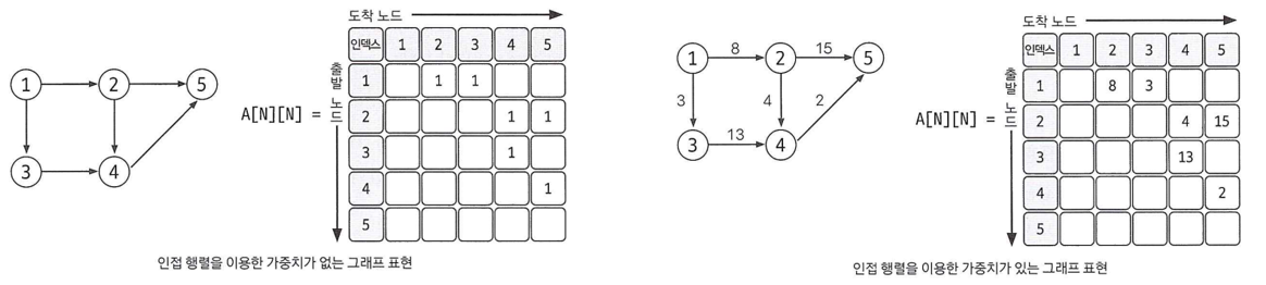 - 또한, 노드 수보다 간선의 수가 적은 희소 그래프(Sparse Graph)라면, 메모리가 비효율적이다