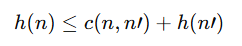 ( 현재 노드의 추정값 ≤ n에서 n'으로 이동하는 실제 비용 + n'에서 목표까지의 추정 비용 )