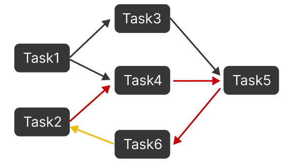 - Task2에서 DFS로 거슬러 올라가서 Task6이 연결되어 있는지 찾아본다.
