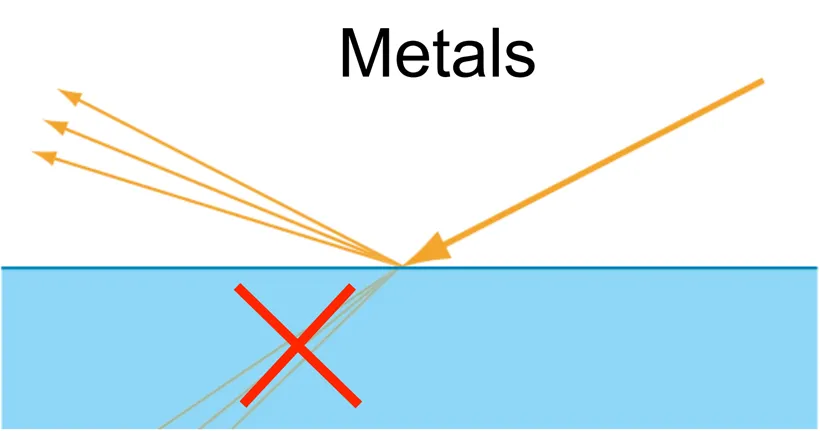- 비금속과 달리 금속 내부로 빛이 깊게 들어가지 않음 (금속은 자유전자가 많아서)