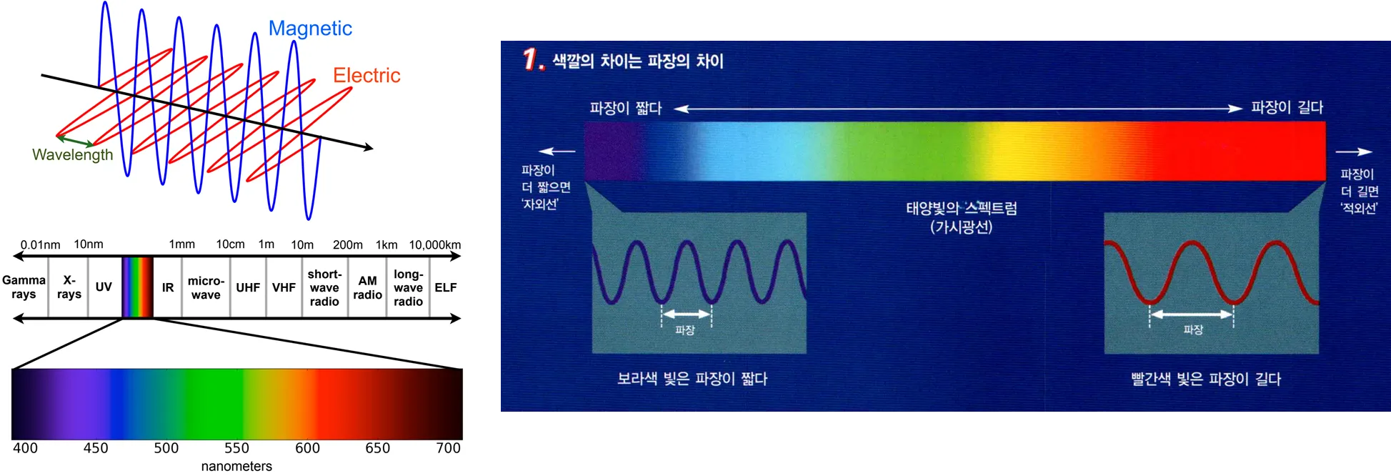 - 가시광선과 색: 파장 차이에 따른 색 구분, 간섭/회절 등 파동적 현상