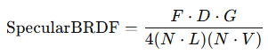 Specular BRDF = (D * F * G) / (4 * N·L * N·V)